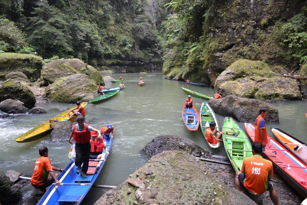 We would be joined by our guide Manalo who was in his uniform of the agency that was supplying the boat. We had to pay 1350 Pesos per head for the boat ride and back along with the gear which contained a life-jacket and a plastic helmet. We set-off soon after changing into our clothes which we brought along with us for getting wet. The initial phase was calm and we were pulled by a motor boat for some distance. We would be going against the flow and hence it would be a long two-hour ride. After a few minutes, the rocks appeared, the motor boat vanished and Manalo got into action literally carrying the boat along the rocks.