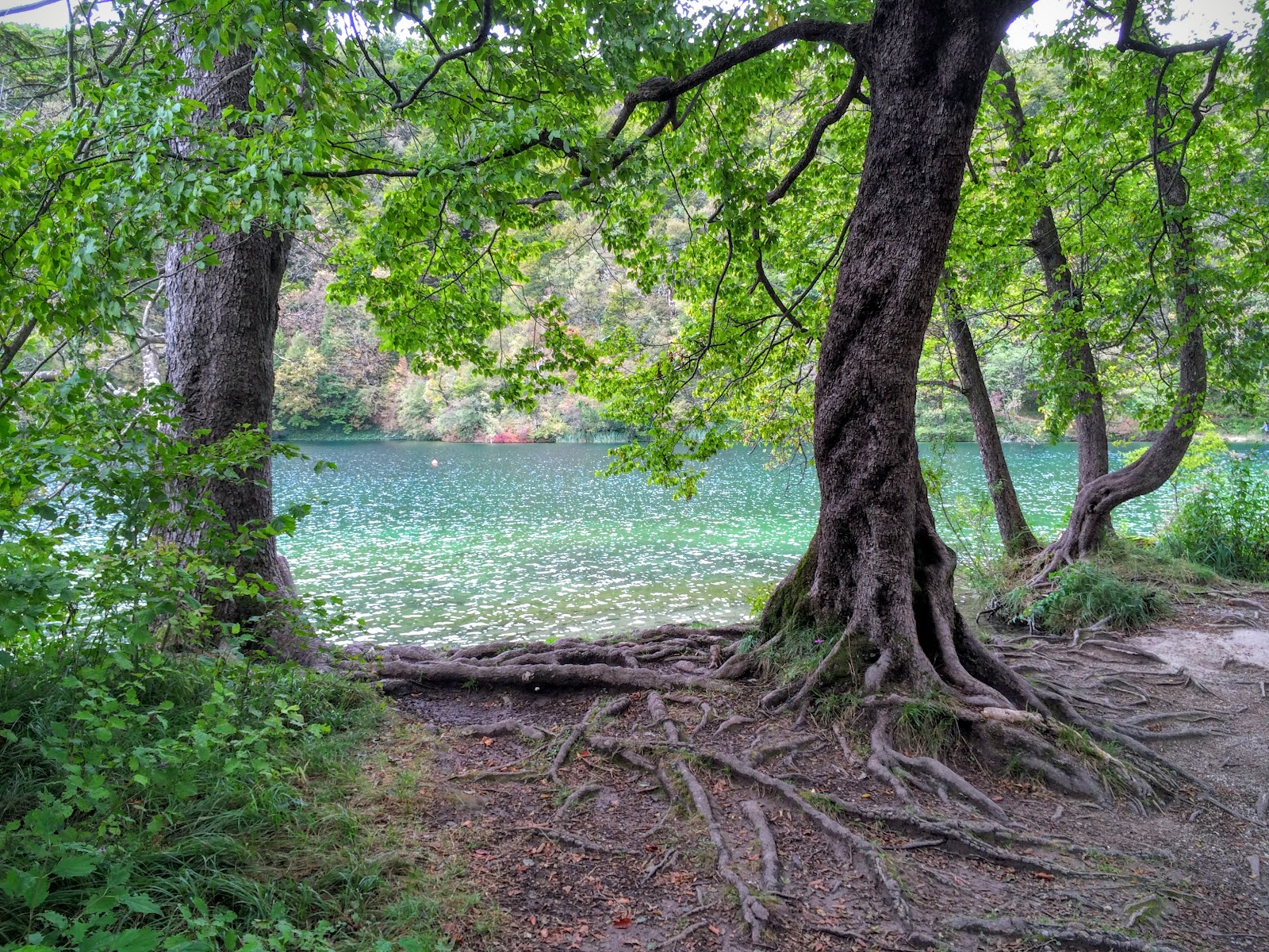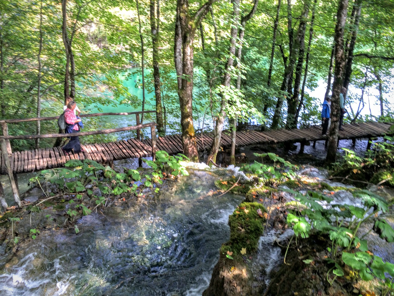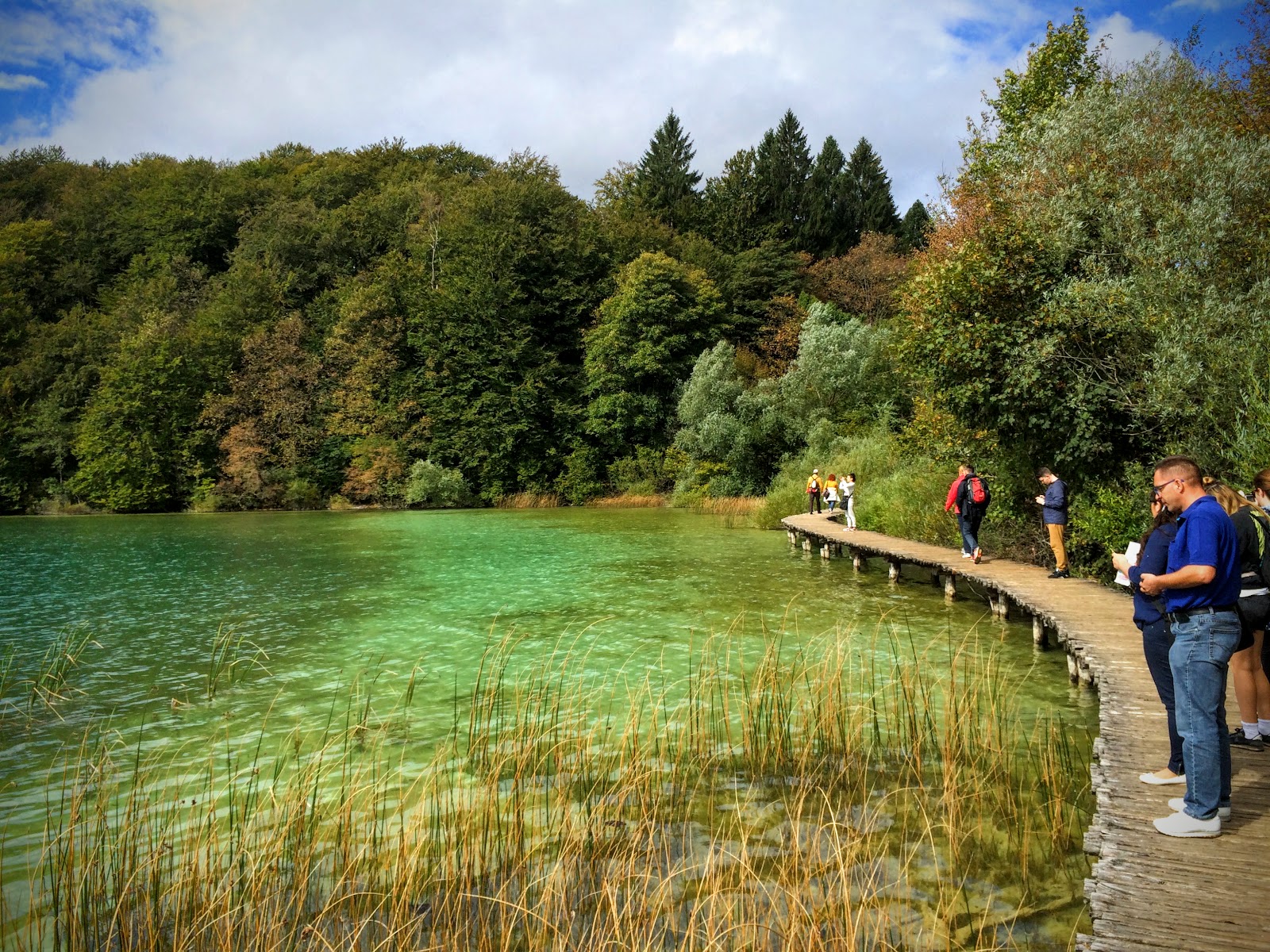 Our first destination would be a UNESCO World Heritage Site – Plitvice Lakes National Park. The national park is famous for its cascading lakes joined by a number of waterfalls. The place is a natural beauty, having these lakes surrounded by mountains and it is one of most sought after destinations in Croatia. The place was a four hour bus ride from Split. The route was quite scenic through the mountain ranges which I managed to notice in between my winks. We reached the national park at around 1 PM. We were booked at the Hotel Bellevue within the premises of the park, just a short walk from Gate number 2 where the bus dropped us. As the hotel reception told us that we will be able to check in only at 2 PM, we couldn’t resist taking a walk down to the nearest lake and in the process buy the tickets for the weekend. The tickets included the bus rides and ferry rides to multiple attraction points within the park. The place consisted of a lower and an upper level, both having a number of lakes and waterfalls. We started on the trail towards the lower lakes. A short bus ride took us to the start of the trail, which was close to Gate number 1. We picked up a frozen ham sandwich at the cafe to provide some boost for the trek ahead as we were famished since morning. Finally we were all set for a visual treat provided by mother nature. The weather gods listened to us too as the clouds cleared out to make way for some bright sunshine.