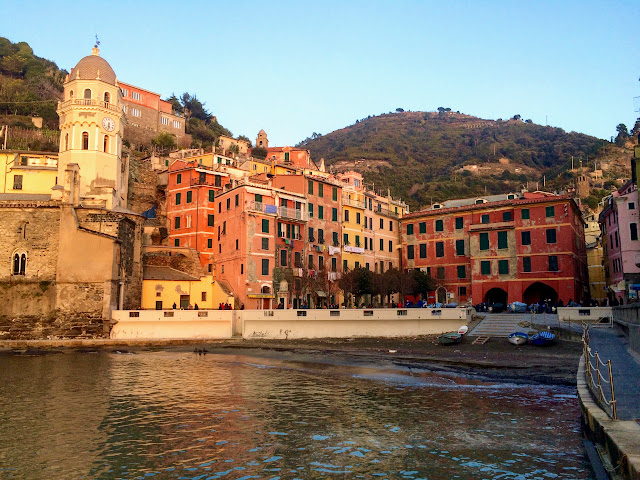 By the time we reached Vernazza, twilight had set in and was now time for the setting sun. The view of the place looked similar. Colorful buildings meeting the sea. But the highlight of the moment was the sunset. It was the most gorgeous, clear sunset that I have ever witnessed where the sun looked more like a fluorescent, orange balloon going down into the sea.