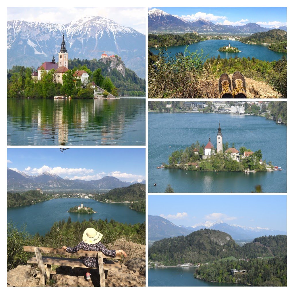 However, we could not resist an open air café breakfast with cheese omelette. This proved to be a bit costly as the service was delayed. Nevertheless, how could we not enjoy sitting in an open air café I Europe on one of the first sunny days post winter. After soaking in the atmosphere and enjoying the sunshine, we made our way to the bus stand only to see that the 12 PM bus had departed and the next bus would be at 1. Why does it always happen like that, we wondered? One hour passed by quickly and we were soon on our way to Bled. I had little idea of the place apart from the lake. Soon I noticed my favourite sight, that of snow-capped mountains. The peaks became more and more prominent and gave us an idea what was in store for us. We reached Bled in an hour and soon realized that just a day trip was not enough. One just had to stay overnight and enjoy all that was on offer. Sadly we did not have the luxury so our task was cut out. Make out the most of what could be done throughout the six hours of day light available to us. We got the first sight of he gorgeous lake. It was still not at its blue-est but with the sun shining and the clouds clearing, it was slowly getting there. Our first target was to get the view from the top and for that the information desk told us about the point on the a hill-top named Ojstrica. We started our walk towards that along the circumference of the lake. Needless to say the walk with nature was beautiful. The clouds cleared up, the sun shone and the water turned to its blue-est with every passing minute. From a distance we could notice there were people swimming in the water. I wondered if the water would be warm enough as early as April. We took short photo and coffee breaks as we moved towards our point. We reached the camp site known as the Bled Camp which we were told was the landmark after which we would have to lookout for the board saying Ojstrica. Bled Camp was very interesting as it provided accommodation of various types – from tents to log cabins. We rued the fact that we would not be staying in Bled for the night. This would have been one fascinating experience had we stayed at the Bled Camp. Now we could view the gorgeous snow-capped peaks of the Julian Alps in the background and it added to the spectacle which could remind one of Lake Geneva in Switzerland. We soon spotted our board saying Ojstrica and duly took the detour into the forest. We followed the trail up the slope. It would be a half a km walk we thought. The incline was not challenging yet and we would make it easily. However the last bit to go on top of the mountain was as steep as it could get. My wife already known to make an Everest out of such treks already panicked and even suggested she stays back while I go to the summit. Of course that was not to be. We trekked and climbed up having the stones and the base of the tree branches as a grip. There was room for only one person to move so when we had people descending, we had to make way. Finally after some struggle we were atop the hill and was treated to the most gorgeous view of Lake Bled – The snow capped mountains, the island, the castle all captured in one frame along with the blue water. The point did not have much space. There was one wooden bench where people were sitting in turns. There were around twenty people out there which was manageable. Needless to say we wanted to click all possible angles of the view and mostly we were busy with the cameras. We still managed to eke out moments where were enjoyed the view and soaked in the moment rather than fiddling with the camera. After a good one hour on top, we now had to make a move on. All this while the sun was it is brightest. The decent is always more tricky as one needs to balance ones self in order to make sure the centre of gravity of the body is at the right place else there is a chance to get dragged down and fall. We safely negotiated the short decent despite some panic from my wife. We were soon back to the lake side. We were tired now after the somewhat tiresome trek and also need a few bites before moving on. We dipped our feet in the water for a while. It was too cold for a swim but was quite all right to just dip your feet and knees. The cafe was right there so it was an easy choice to take some rest and grab a few bites. We were soon back on the road to resume our walk along the circumference of the lake.