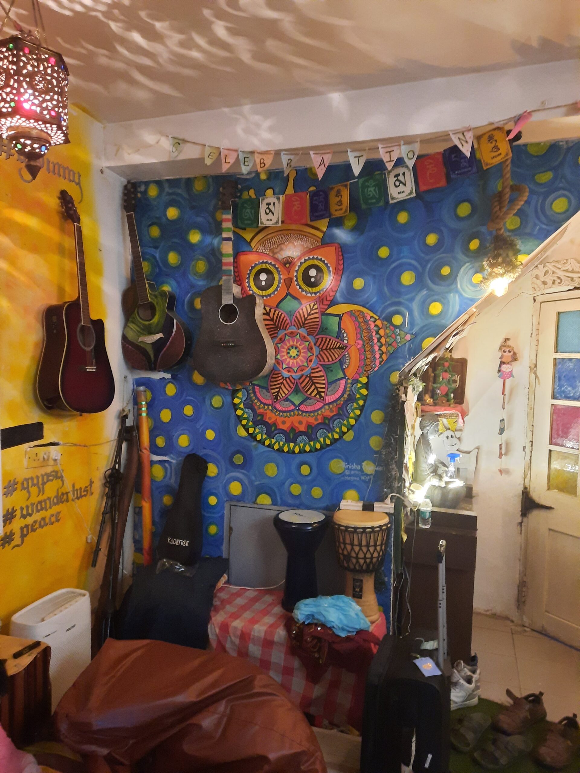 As I walked through Hauz Khas village to the auto-stand on my way to the airport, I spotted a board showing Gypsy Café. I had little hesitation to explore this. It was inside a building facing the lake. Was a wonderful café apt for its name and perfect for a travel blogger like me. Nice décor, loads of musical instruments, hookahs, made it a great ambience. I only had time for a masala chai but told myself that I will be back here on my next Delhi visit.